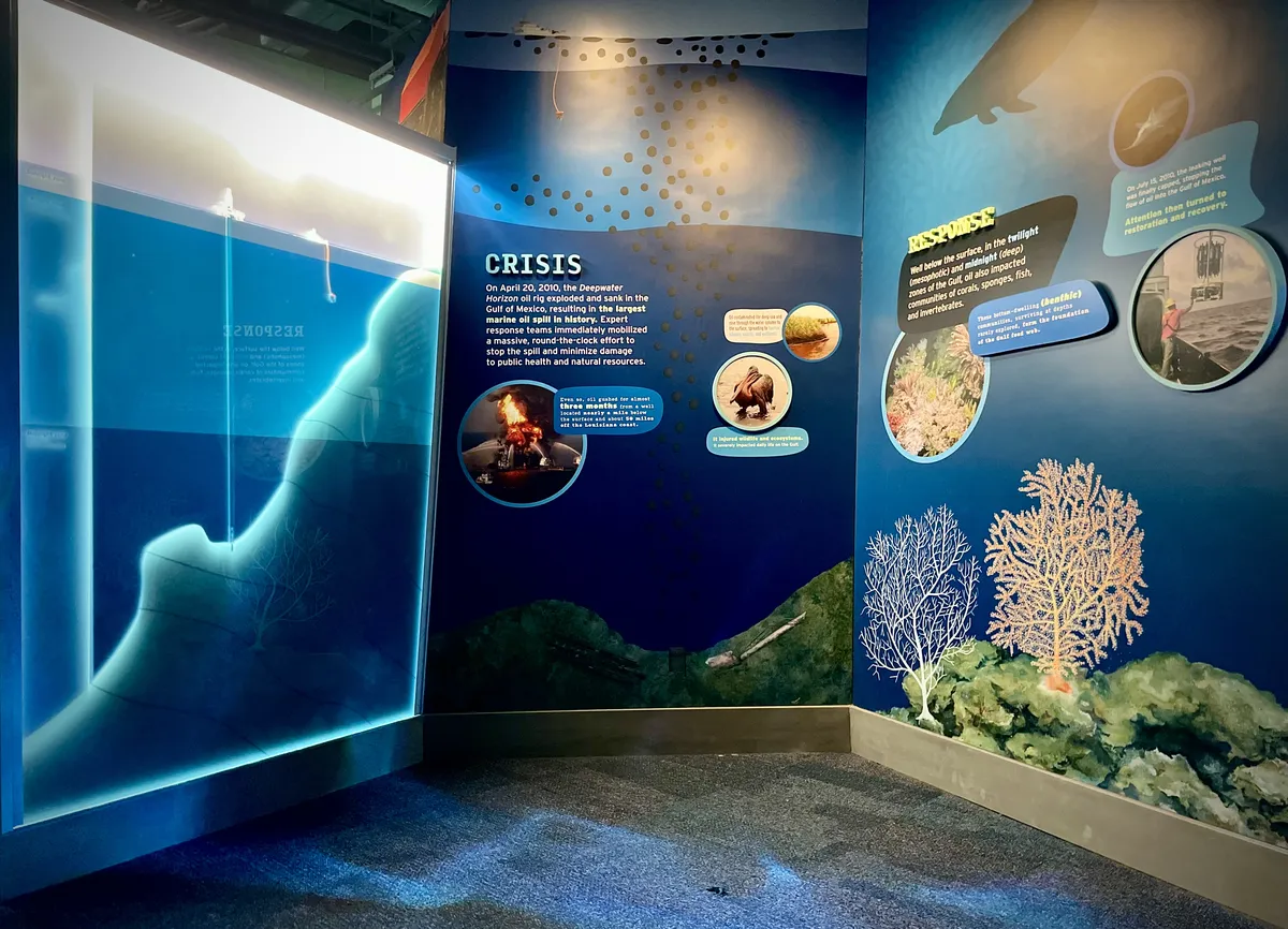 We collaborated closely with Audubon and conservation stakeholders to craft an engaging exhibition that shines a light on the rarely seen twilight and midnight zones of the Gulf. From a living coral exhibit—the first of its kind—to interactive footage that lets guests act as explorers, every element invites connection. Thoughtfully designed educational panels share the story behind the 2010 Deepwater Horizon oil spill and the restoration efforts still underway. A captivating 3D map and larger-than-life art wall help visitors of all ages understand the beauty and complexity beneath the surface. By blending detailed storytelling with tactile experiences, the exhibit deepens empathy for ocean life and supports Audubon’s mission of conservation through education.
