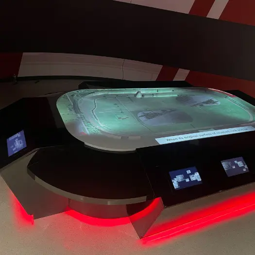 We partnered closely with Scenario to shape several centerpiece elements throughout the museum, each crafted to support both form and function. From the bold steel-and-quartz welcome desk to the towering, lighted faceted wall cradling rare race cars, every installation served a purpose while telling a story. Our work on the winner’s gallery combined sleek aluminum finishes with hidden LED illumination for a clean, flexible showcase of Indy’s champions. One of our favorite features was the projection-mapped Model Base Exhibit—a hands-on scale replica surrounded by interactive monitors that invite visitors to discover the Speedway’s heritage at their own pace. We also brought to life several custom builds, including a dynamic pin map wall, storytelling stations, and integrated tech desks to round out the guest experience. Following the renovation, Indianapolis Motor Speedway Museum received the coveted Museum of the Year award from The International Historic Motoring Awards, considered the world's most prestigious awards in the collector car world.