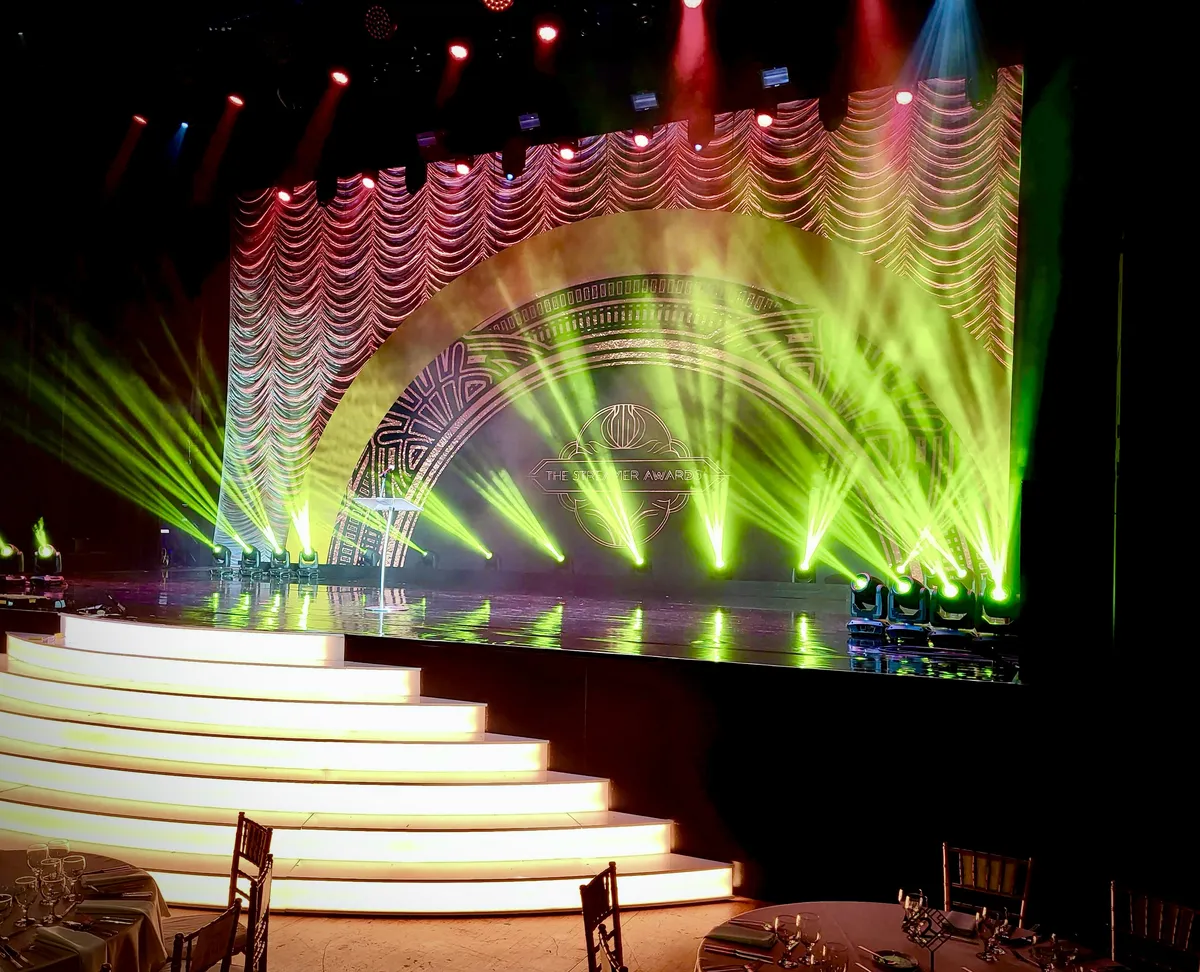 As the first awards show of its kind, the Streamer Awards showcases the achievements of web-based artists and performers. For its second annual event, the show was staged at the historic Wiltern Theater in Los Angeles, CA, where set design called for slick, contemporary touches to evoke traditional Hollywood glamour with a modern twist.
