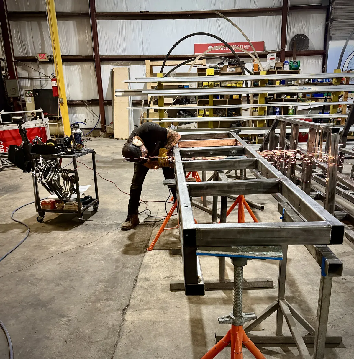 What you're actually looking at are the many, many pieces of raw modular steel that we've painstakingly cut, welded, and bolted together to eventually become 16 cases of varying sizes for never-before-seen Civil War artifacts.