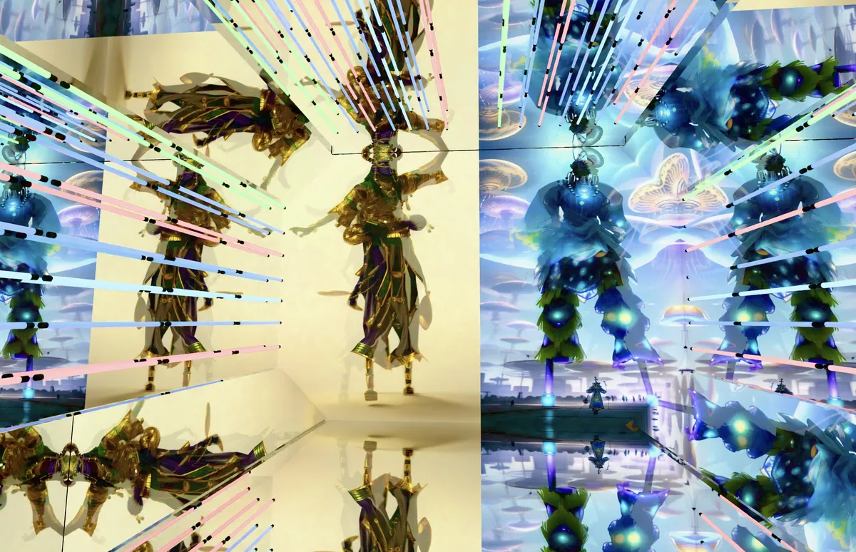 London-based artist Vince Fraser, simply put, creates visionary portals with his art. Ancestral Odyssey: African Diaspora Futures is no exception to this magic. Fraser’s Afrofuturism installation, which opened this June at the New Orleans African American Museum, presents an immersive, multi-sensory vessel, plunging attendees into soundscapes and digital “portals” that symbolize the thresholds between the physical and metaphysical. Using photorealism and blending traditional African symbols with futuristic motifs, Fraser has created spaces where past, present and future realms coexist.